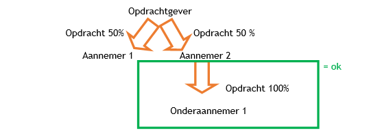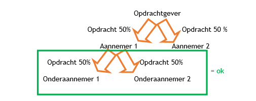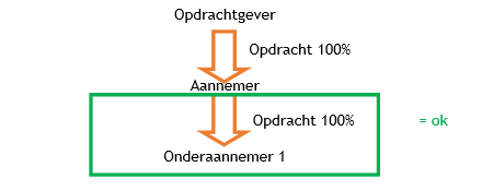 Een onderaannemer mag wel een deel van de uitvoering van de overeenkomst die hij heeft gesloten, verder in onderaanneming geven. De vereiste is dus dat de onderaannemer een deel van het werk zelf doet. Een ander deel kan dan naar de subonderaannemer.
