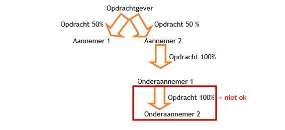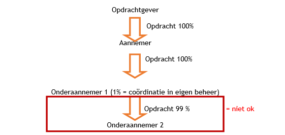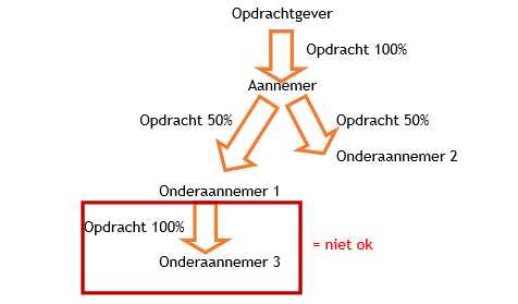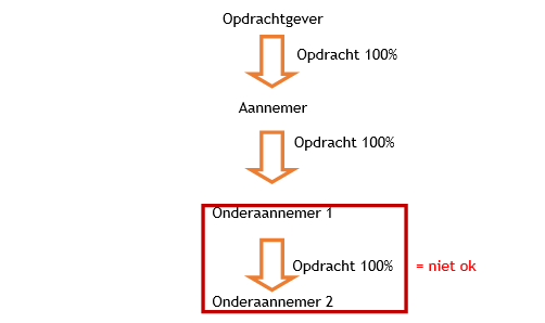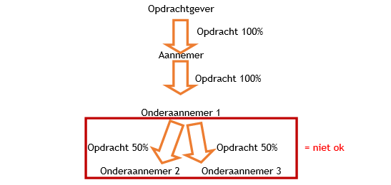 Is dus verboden: het louter opnemen van één van hogervermelde taken door de onderaannemer terwijl de overige onderdelen van de opdracht worden doorgegeven aan een of meerdere sub-onderaannemer.